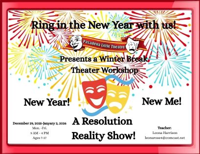Join us for a New Year’s Theater Workshop where campers will participate in creating a reality TV show following a cast of characters with comical and challenging New Year’s Resolutions. Campers will invent unique characters, like “Gordon the Grump” who resolves to be nice, or “Penelope the Procrastinator” who decides to be punctual.